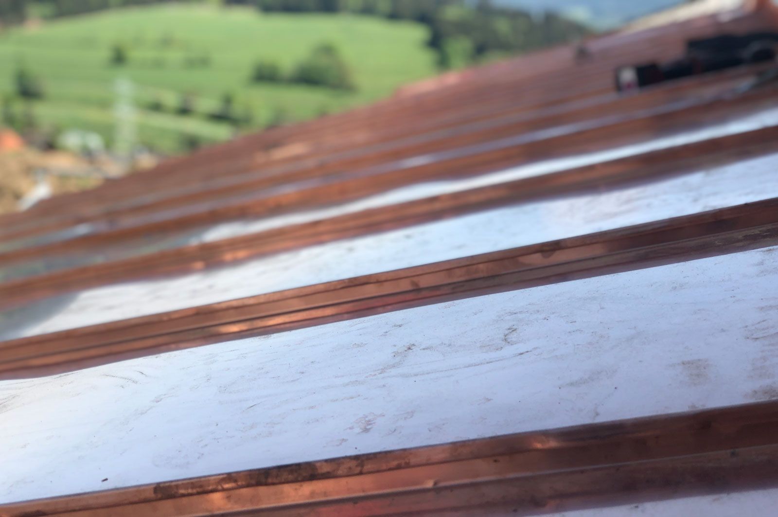 Bei einem Metalldach sind Ihrer Kreativität keine Grenzen gesetzt, denn es gibt eine nahezu unerschöpfliche Auswahl an Farben und Oberflächen. Sehr oft verwenden wir Kupfer, Titanzink und Aluminium. Wir beraten Sie gerne, welches Metall Ihren Wünschen am besten entspricht.